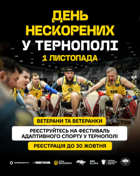 1 листопада Тернопіль прийматиме «День Нескорених» — спортивний захід для ветеранів/-ок війни, організований Мінветеранів, спільно з проєктом «Ігри Нескорених» в