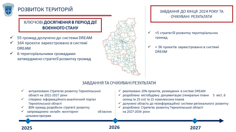 Начальник Тернопільської обласної військової адміністрації В’ячеслав Негода та його перший заступник Степан Куйбіда представили стратегічний план розвитку області до кінця цього та на наступні декілька років, який охоплює ключові сфери регіонального розвитку, від економіки та агропромислового комплексу до соціальної та безпекової політики.