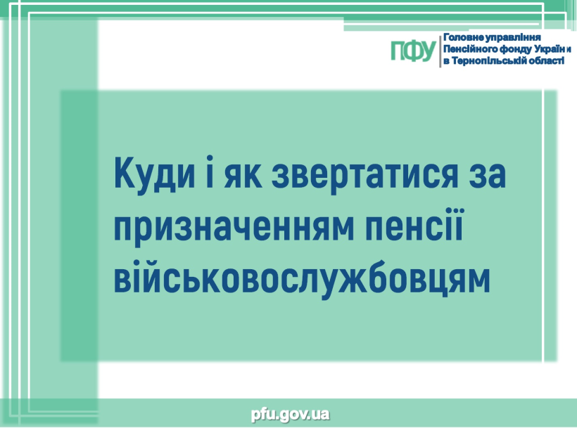 Звільнені зі служби військовослужбовці, інші особи (крім військовослужбовців строкової служби), члени їх сімей (якщо пенсія померлому годувальнику не призначалась) подають заяви про призначення пенсій до органу Пенсійного фонду України через уповноважений орган (структурний підрозділ), який здійснює підготовку документів, необхідних для призначення пенсій, силового міністерства або відомства за останнім місцем служби (наприклад через ТЦК СП).