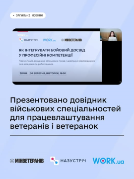 Презентовано довідник військових спеціальностей для працевлаштування ветеранів і ветеранок