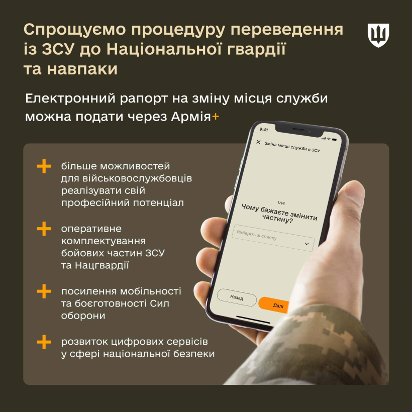 Даємо можливість подати електронний рапорт на зміну місця служби через застосунок Армія+.