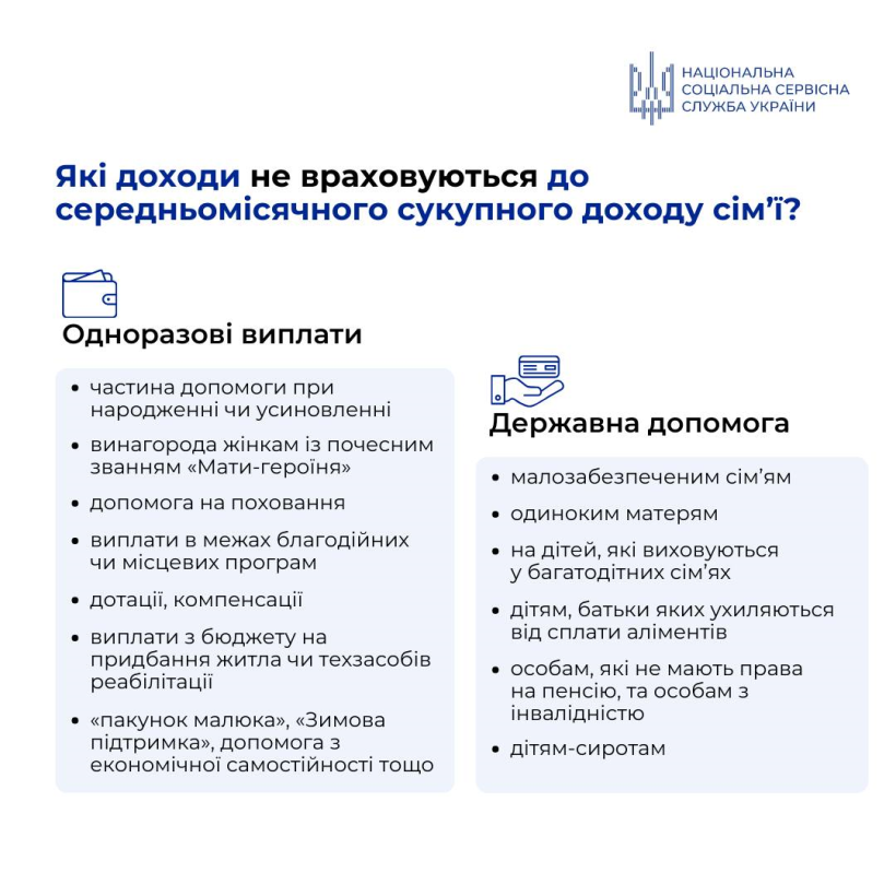 Нещодавно ми детальніше розповідали про перелік прибутків, які враховуються при визначенні сукупного середньомісячного доходу сім’ї. Цього разу – про доходи, які не включатимуться до розрахунку. Зокрема, це окремі види державних допомог, одноразові виплати, пільги та житлові субсидії.