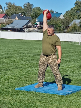 У випробуваннях з гирьового спорту в особистому заліку перемогу здобув Андрій Худий, учасник бойових дій, військовослужбовець Збройних Сил України зі Скориківської громади.